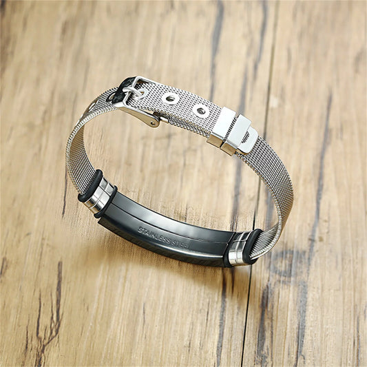 Lord's Prayer Mesh Bracelet – Black Stainless Steel with Cross